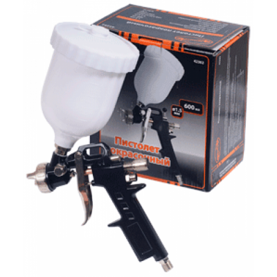Краскопульт верхн.бачок 0.68л, АВТОДЕЛО, 42362 наносит защитные покрытия и лакокрасочные материалы на поверхности и обладает гравитационной подачей сырья. Оптимальное воздушное давление 3,5 кгс/см2. Затраты: краска – 160-230 мл/мин, воздух – 350 л/мин. Вместимость полиуретанового бачка 600мл. Предусмотрен быстроснимаемый разъём под присоединительный квадрат ¼‘.