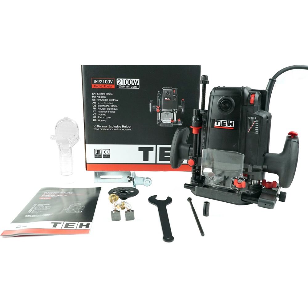 Фрезер TEH TER2100V предназначен для фрезерования (в т. ч. фигурного, по шаблону, по радиусу) различными типами фрез заготовок из дерева, древесно-стружечных плит и пластмасс, а при установке соответствующего сменного инструмента – металла. Фрезы крепятся посредством цангового зажима. Регулировка оборотов двигателя и глубины фрезерования позволяют выполнить работу с высокой точностью.