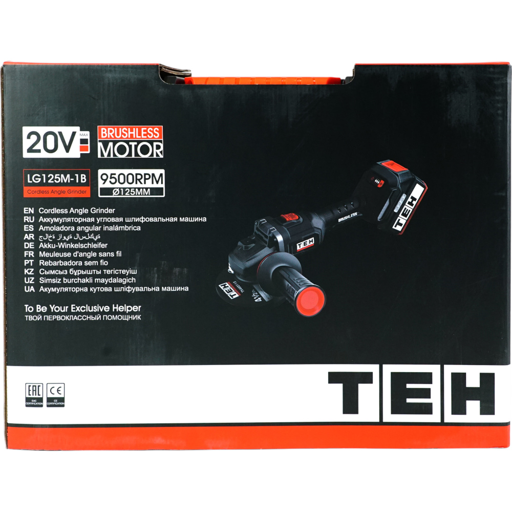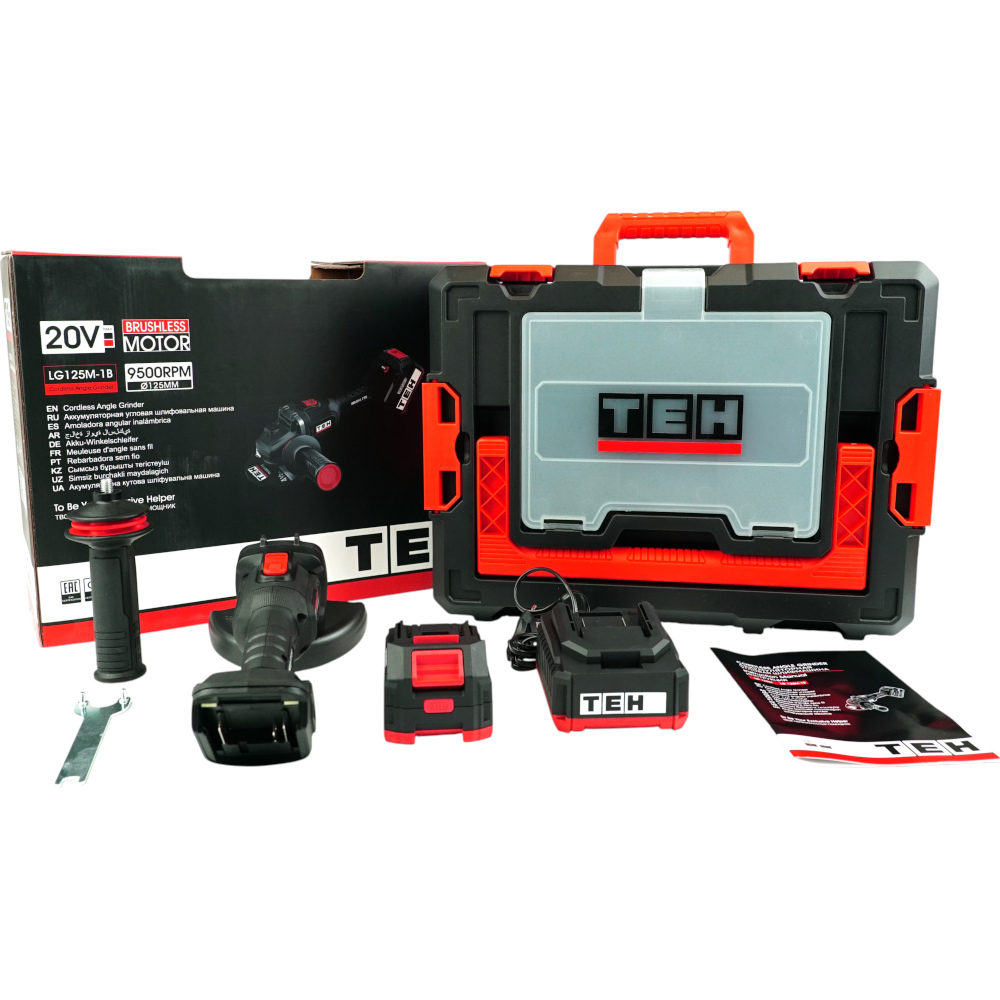 УШМ аккум. TEH LG125M-1B (20В, 125мм, 2000-9500об/мин, рег.обор.:6скор.,1АКБ*4Ач, ЗУ,кейс STACK)