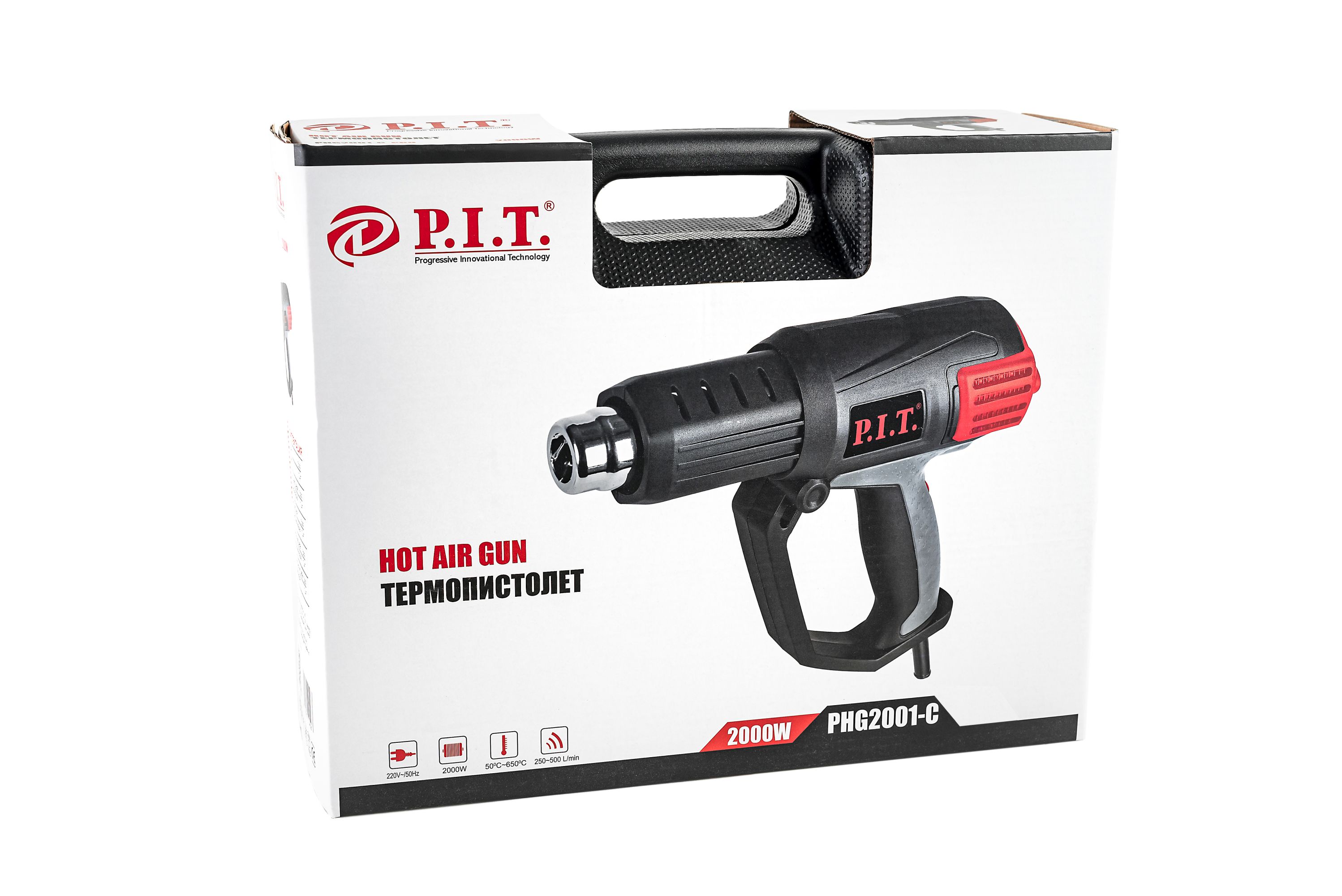 Фен PHG2001-C (2кВт,кейс,50-650°С,возд.поток 250-500л/мин,цифр.дисп,керам.нагр.э) P.I.T.