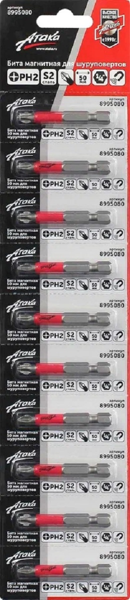 Бита для заворачивания АТАКА 8995080 магнитная PH2x50 мм