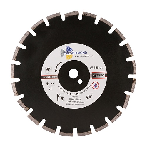 Диск алмазный отрезной сегментный с защитным зубом Grand Asphalt (350х25.4 мм) TRIO-DIAMOND GA773. Материал обработки: асфальт, свежий бетон, асфальтобетон, песчаник.