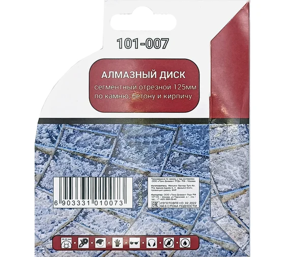 Артикул 101-007 Посадочный диаметр, мм: 22.2 мм Тип реза сухой (с СОЖ и без) Диаметр диска, мм 125 Толщина, мм: 2 мм Материал обработки: по камню, бетону, кирпичу Базовая единица шт -
