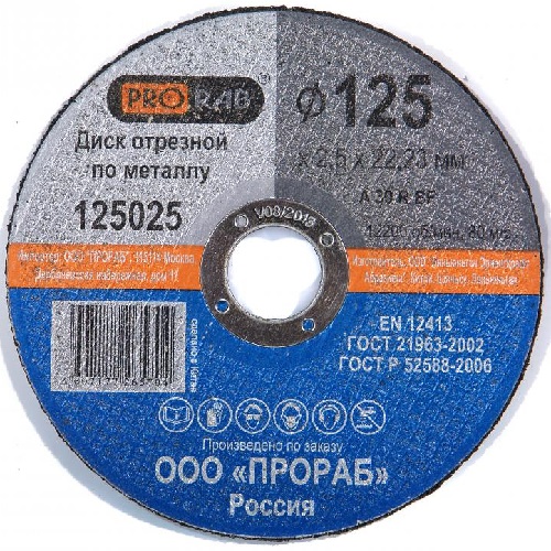 Круг отрезной Prorab по металлу 125*2,5*22,23 125025