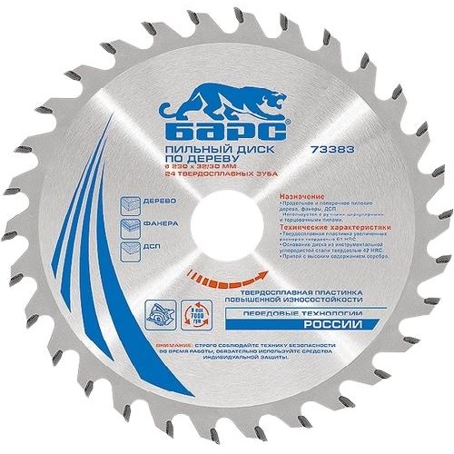 Диск пильный Барс по дереву 190*30мм, 24 твердосплавных зуба
