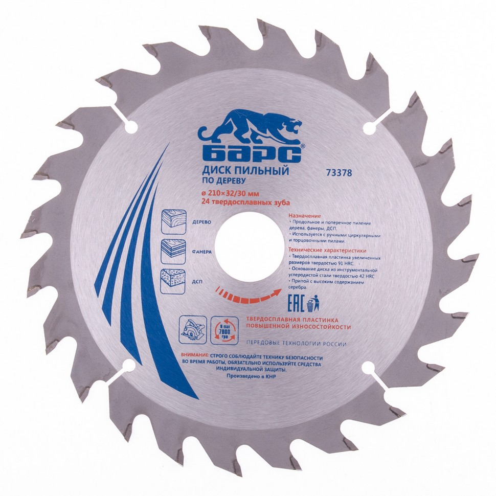 Диск пильный Барс по дереву 210*32/30мм, 24 твердосплавных зуба 73378