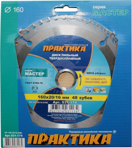 Диск пильный Практика 160*20/16 Z=48 ламинат