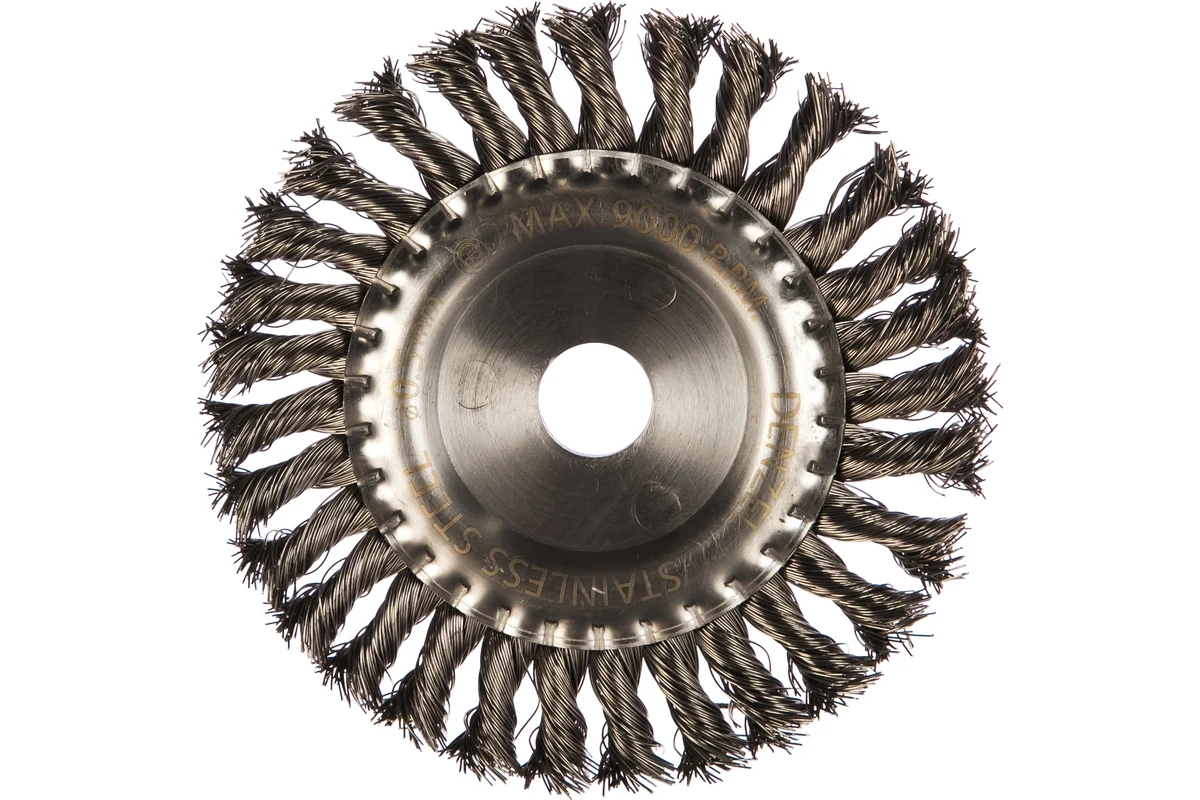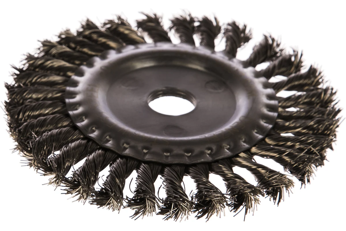 Плоская щетка для УШМ Denzel 746343 диаметром 150 мм, с посадкой 22,2 мм, с щетиной из крученой нержавеющей проволоки 0,5 мм, предназначена для снятия...