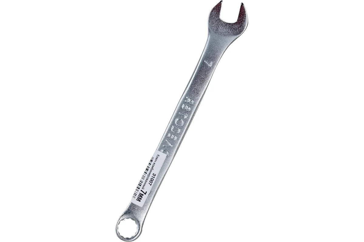 Комбинированный ключ 7х7 АвтоDело 31007 13481 оборудован накидной и рожковой головками. Это позволяет работать с крепежом с боковым и торцевым доступом.