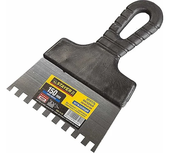 Шпатель Stayer PROFESSIONAL нерж.зубчат. с пласт. ручкой 150мм зуб 8*8мм 1009-15-08