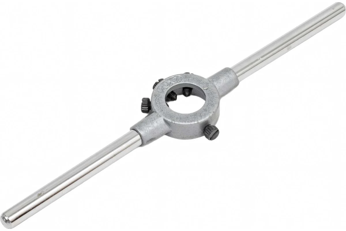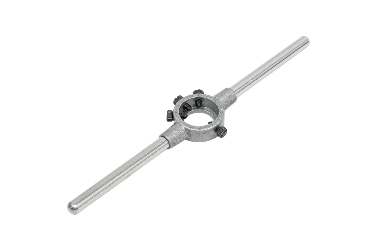 Держатель для плашек - используется для работы с плашками М3-M6. Стопорные винты надёжно фиксируют плашку. Держатель оснащен стальными рукоятками. Пос...
