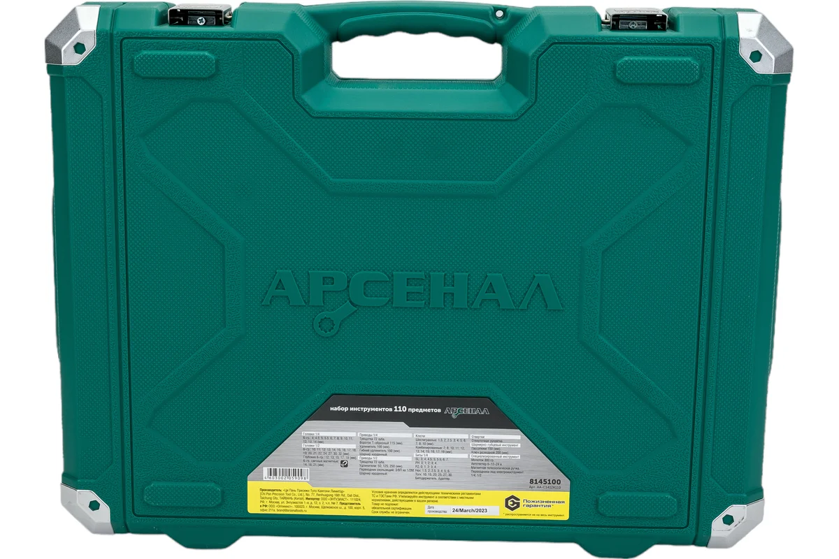 Артикул 8145100 Бренд: АРСЕНАЛ Материал: CrV Базовая единица шт Количество в наборе, шт: 110 шт Параметры упакованного товара