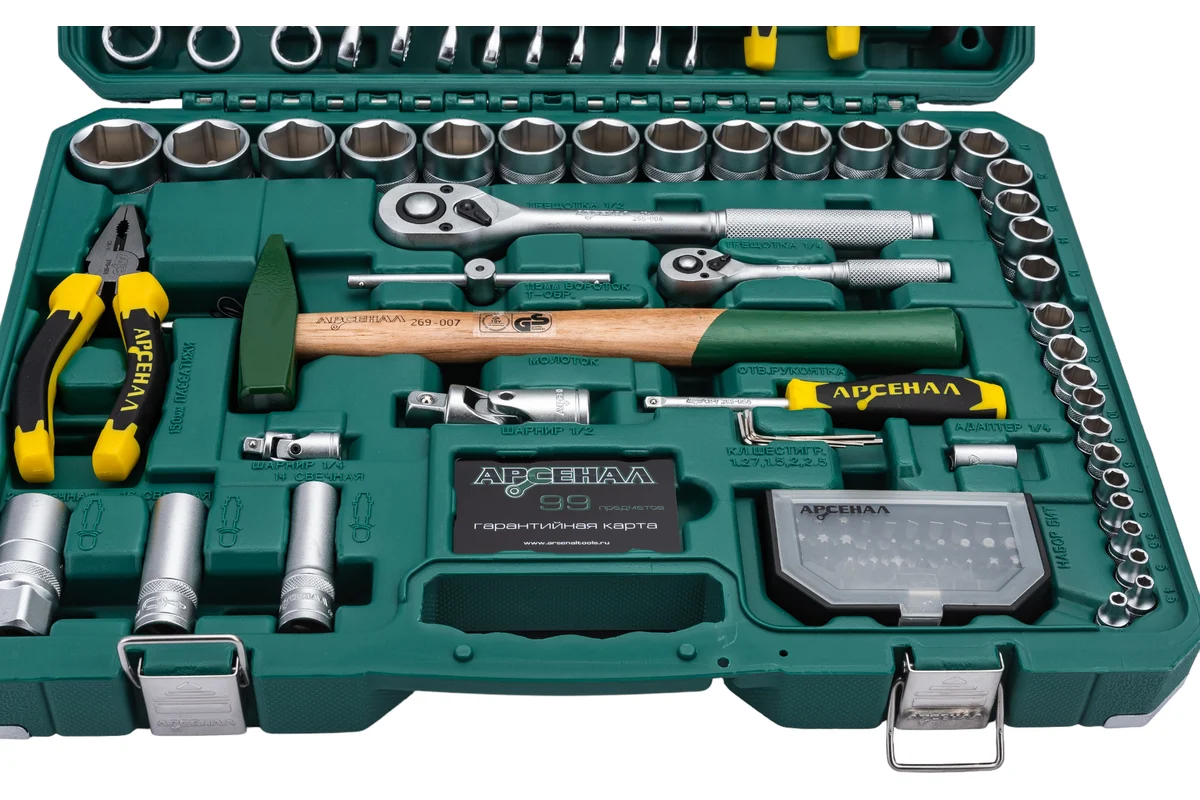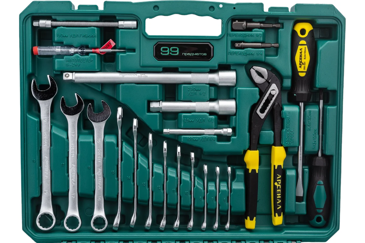 Набор инструментов 99 предметов Арсенал АА-С1412К99 идеально подходит для задач, которые стоят перед тем, кто предпочитает самостоятельно чинить свое ...