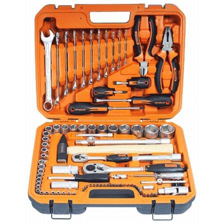 Ключи комбинированные: 6, 7, 8, 10, 11, 12, 13, 14, 15, 17, 19мм. Бокорезы 160мм. Пассатижи комбинированные 180мм. Молоток слесарный 0,3 кг. Отвертки шлицевые: 6.5х38, 6.5х100. Отвертки крестовые: РН2х38, РН2х100. Тестер автомобильный 12 В. Ключи свечные 2 предмета. Размеры: 16, 21 мм. Инструмент с присоединительным квадратом 1/4" (6,3 мм). Головки торцевые: 5, 5.5, 6, 7, 8, 9, 10, 11, 12, 13мм. Головки торцевые TORX: Е4, Е5, Е6, Е7, Е8. Удлинитель прямой 100мм. Кардан шарнирный. Трещотка 150 мм, 45 зубов, минимальный угол поворота 8°. Вороток Т-образный 110мм. Отвёртка-вороток 150мм. Держатель бит. Держатель бит магнитный магнитный 1/4" - 1/4". Инструмент с присоединительным квадратом 1/2" (12,5мм). Головки торцевые: 8, 10, 11, 12, 13, 14, 15, 16, 17, 18, 19, 21, 22, 24, 27, 30, 32мм. Удлинители: 125, 250мм. Трещотка 250 мм, 45 зубов, минимальный угол поворота 8°. Кардан шарнирный. Переходник (головка на вороток) гловка 3/8" - вставка 1/2" Биты. Вставки 1/4" TORX : Т8, Т10, Т15, Т20, Т25, Т27, Т30. Вставки 1/4" шестигранные: 1.5, 2, 2.5, 3, 4, 5, 6мм. Вставки 5/16" шестигранные: 7, 8, 10, 12, 14мм. Вставки 1/4" шлицевые: 3, 4, 5.5, 6.5мм. Вставки 1/4" Philips: РН1, РН2, РН3. Вставки 1/4" Pozidrive: PZ1, PZ2, PZ3. -