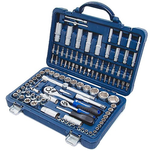 Комплектующие изготовлены из качественной хром-ванадиевой стали. Торцевые головки имеют 6-гранный рабочий профиль. Набор поставляется в пластиковом ке...
