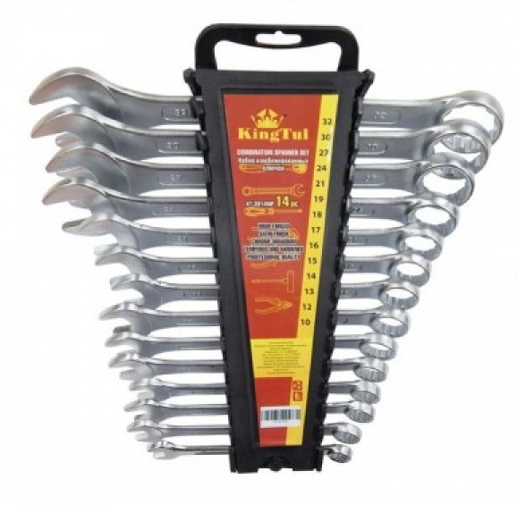 Набор ключей KINGTUL комбинированных 14 предметов (10,12-19,21,24,27,30,32мм) КТ-3014МР