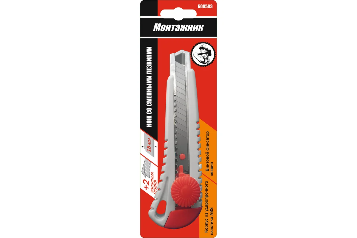Нож со смен. лезв. Монтажник 1+2 лезв.18мм, ABS пластик, винт. фиксатор 600503