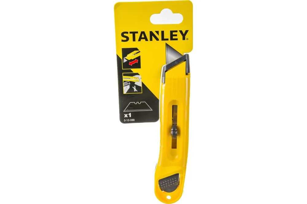 Нож Stanley Utility 0-10-088 с выдвижным трапециевидным лезвием в ударопрочном корпусе из АБС-пластика. С металлической кареткой держателя лезвия. 5 возможных рабочих положений лезвия. Нож с убирающимся лезвием 150 мм Stanley 0-10-088 может применяться при ремонтных, декоративных работах: для разрезания обоев, картона или бумаги. Корпус инструмента изготовлен из ударопрочного АБС-пластика. Лезвие при изнашивании легко заменить.