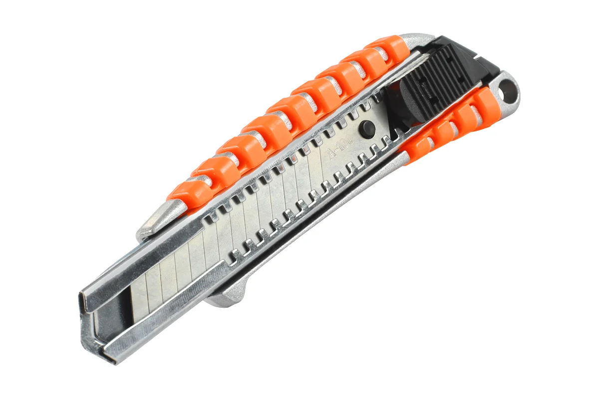 Нож строительный PATRIOT CKP-183 для работы с тонкими материалами. Стальные лезвия имеют сегментированную конструкцию: можно легко отколоть затупившийся сегмент. Ударопрочный выдвижной корпус выполнен из алюминия с резиновыми вставками и оснащён автофикстатором. К ножу подходят наборы сменных лезвий PATRIOT CBS-184 и CBB-181.