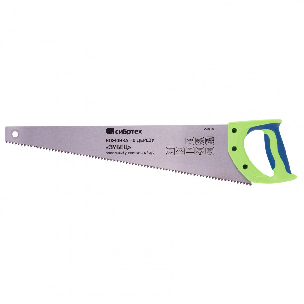 Ножовка по дереву Сибртех "Зубец" 500мм каленый зуб, шаг 7 мм, 2D,2-х компонентная ручка 23818