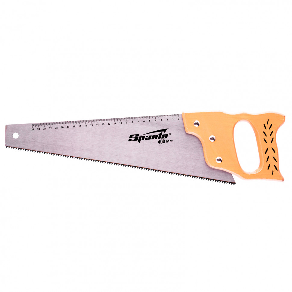 Ножовка по дереву Sparta 400мм 7-8TPI 2D-зуб каленый, линейка, двухкомпонентная рукоятка 235015
