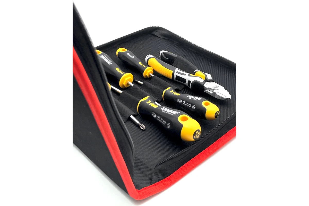Набор отверток Felo Ergonic SL, PH, PZ с бокорезами 160 мм, в сумке 40090604 используется для монтажно-демонтажных и ремонтных работ. Набор комплектуется удобной сумкой с карманами для хранения и транспортировки. Её размер позволяет доукомплектовать инструментом на выбор пользователя.
