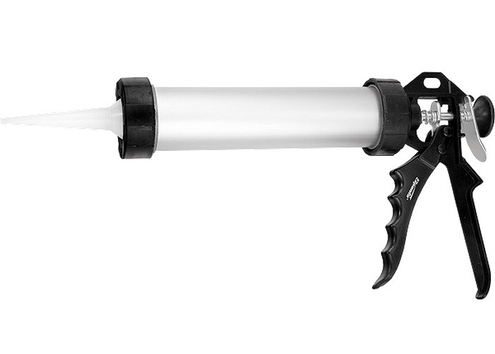 Пистолет для выдавливания герметика с алюминиевым цилиндрическим корпусом. Гладкий хромированный шток имеет круглое сечение. Применяется для выдавливания герметиков как из тубы, так и из картриджей.