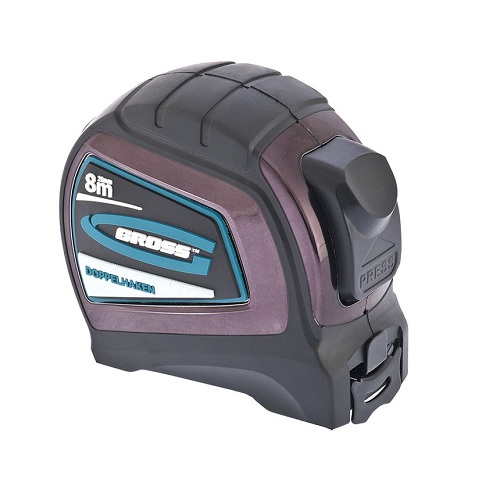 Рулетка Doppelhaken торговой марки GROSS с длиной ленты 8 м и шириной 25 мм. Сочетание ABS-пластика и термопластичной резины позволяет сохранить работоспособность при резких изменениях температуры, а также при падении с высоты до 1,5 м. Измерительное полотно с двухсторонним зацепом имеет дополнительное покрытие нейлоном, защищающее металлическое полотно от истирания и воздействия окружающей среды. Возвратная пружина из углеродистой стали обладает необходимой упругостью и долговечностью. Рулетка имеет автоматическую фиксацию измерительного полотна, что обеспечивает дополнительное удобство в работе.
