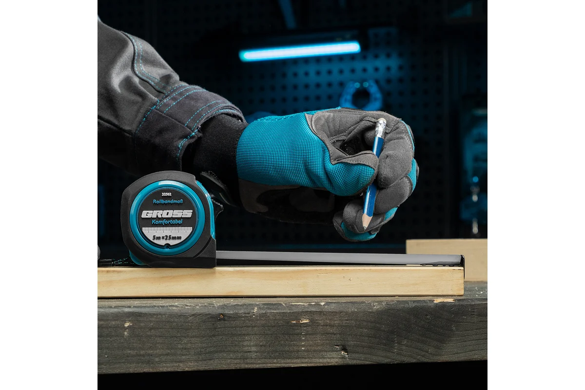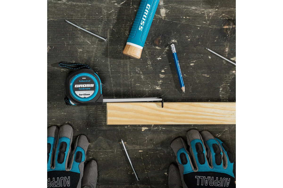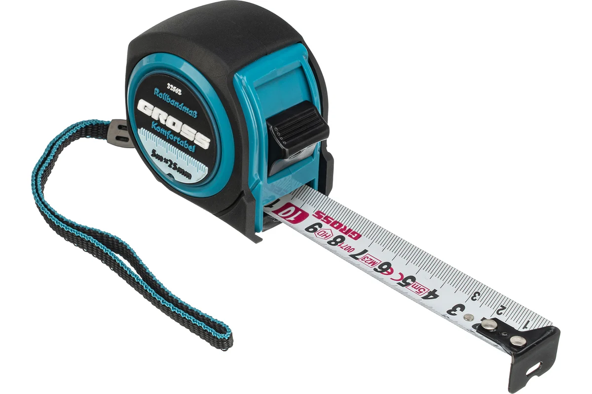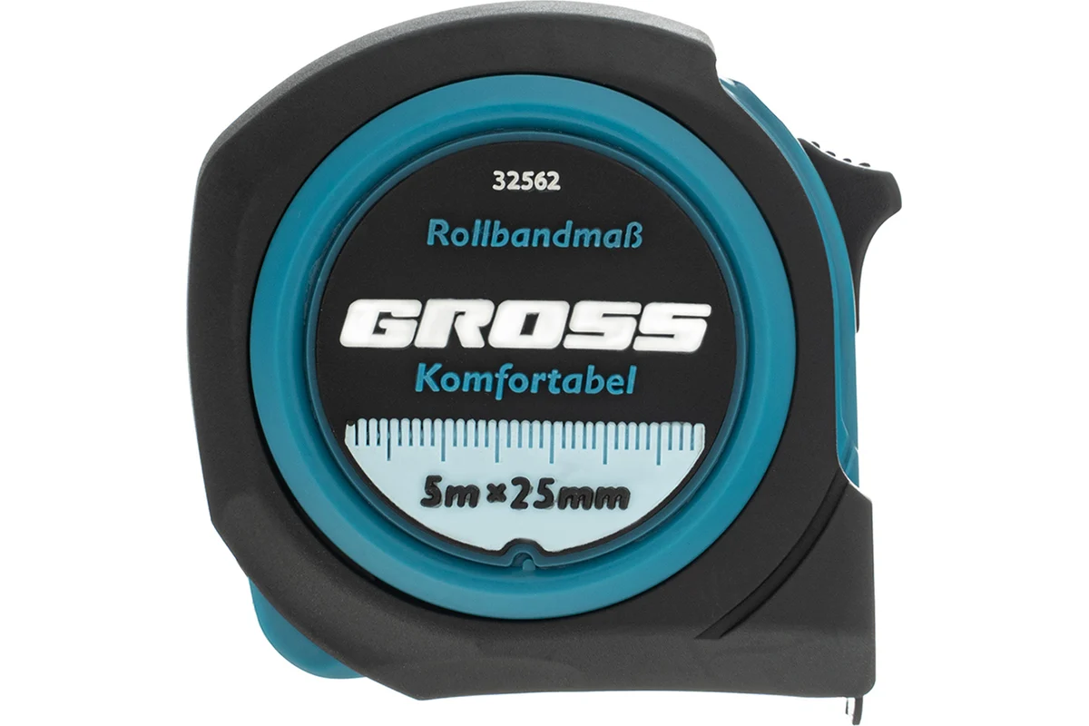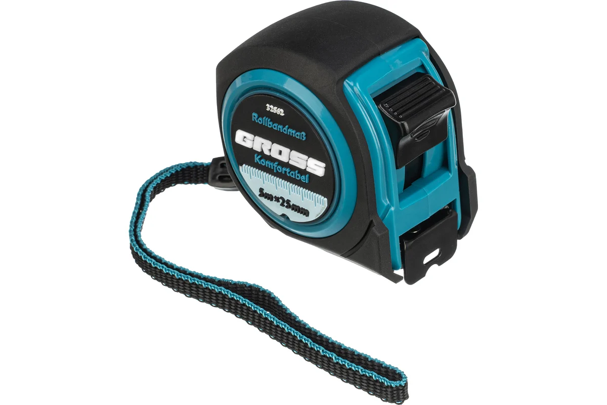 Рулетка Gross «Komfortabel» 32562 в обрезиненном корпусе с лентой длиной 5 м и шириной 25 мм — карманный инструмент для проведения измерительных работ...