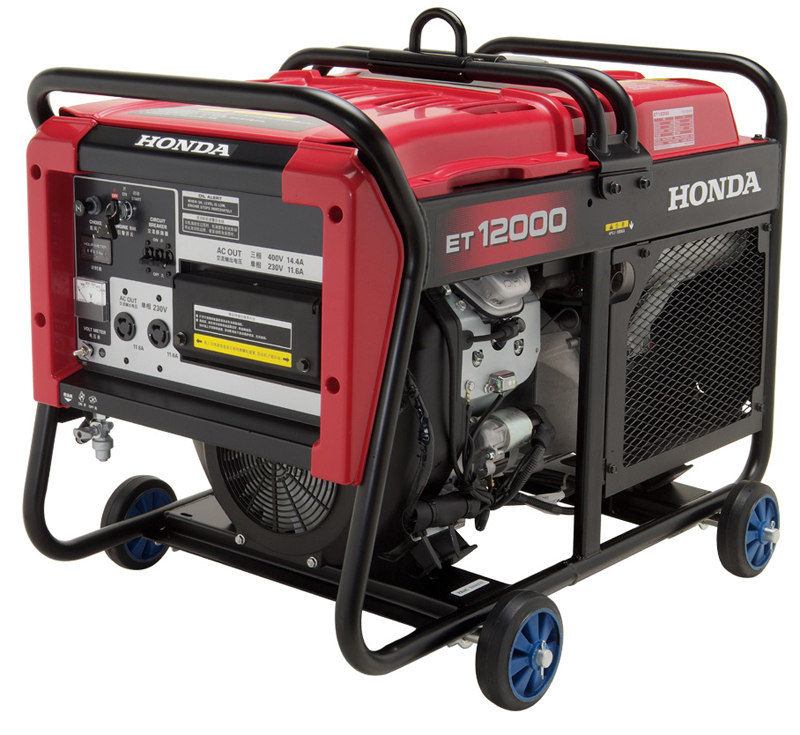 Бензиновый генератор Honda ET12000K1RGH является источником энергоснабжения в загородных домах, на дачах и торговых точках, а также строительных площадках. Топливный бак обеспечивает до 6 часов автономной работы. Прочная металлическая рама образует две рукояти для удобного перемещения агрегата по рабочей площадке. Силовой выход 380В представлен клеммами. На данной модели используются нестандартные розетки, поэтому к ним прилагаются переходники 2 х Schuko 230В/20А, 1 х СЕЕ 230В/32А.