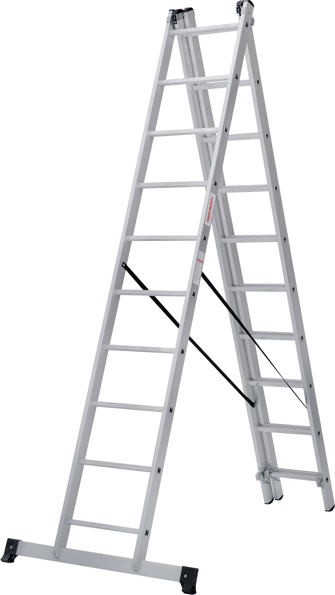 Трехсекционная лестница Новая Высота 3x8 обладает значительной универсальностью, ее конструкция предполагает несколько вариантов использования: приставная раздвижная модель с одной, двумя и тремя секциями, стремянка и стремянка с выдвинутой третьей секцией. Скольжение лестницы по рабочей площадке предотвращают пластиковые наконечники ножек. Они надежно зафиксированы заклепками и обжимом, что исключает их случайное отсоединение. Направляющие элементы укреплены дополнительными ребрами жесткости, что позволяет лестнице выдерживать нагрузку до 150 кг. Выносные секции закрепляются при помощи стальных четырехугольных скоб и не складываются при эксплуатации. Удобная транспортировка обусловлена возможностью снимать траверсу и тем самым уменьшать ширину приспособления до 35 см.