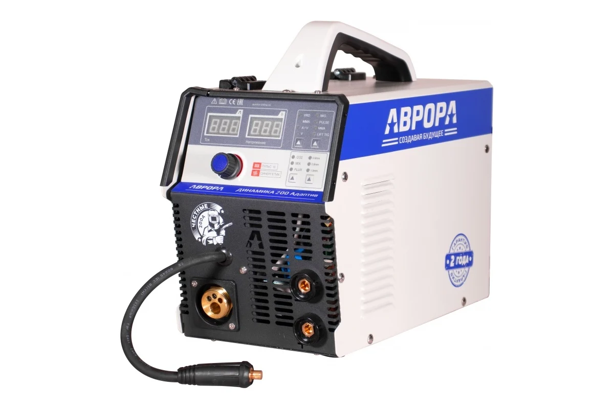 Динамика 200 АДАПТИВ – инверторный полуавтомат АВРОРА с возможностью сварки в четырёх режимах: MIG, ПУЛЬС, MMA, LIFT TIG DC.