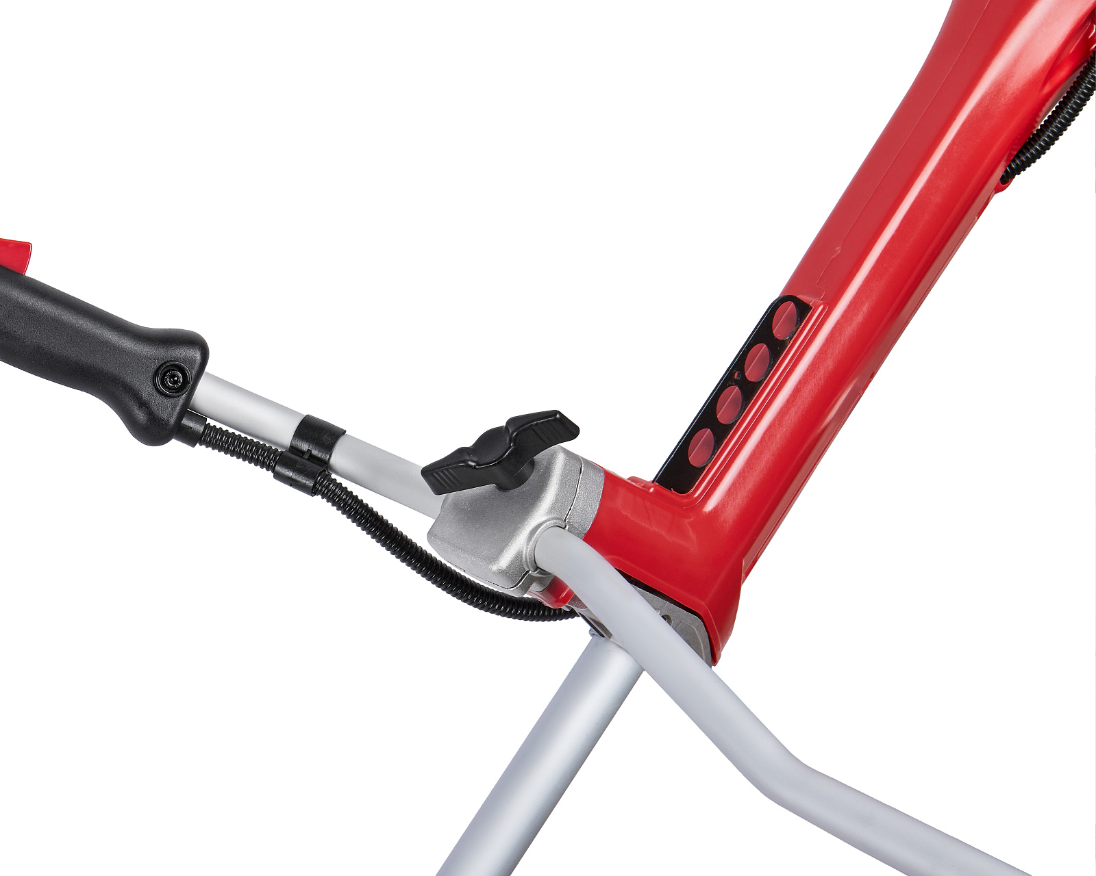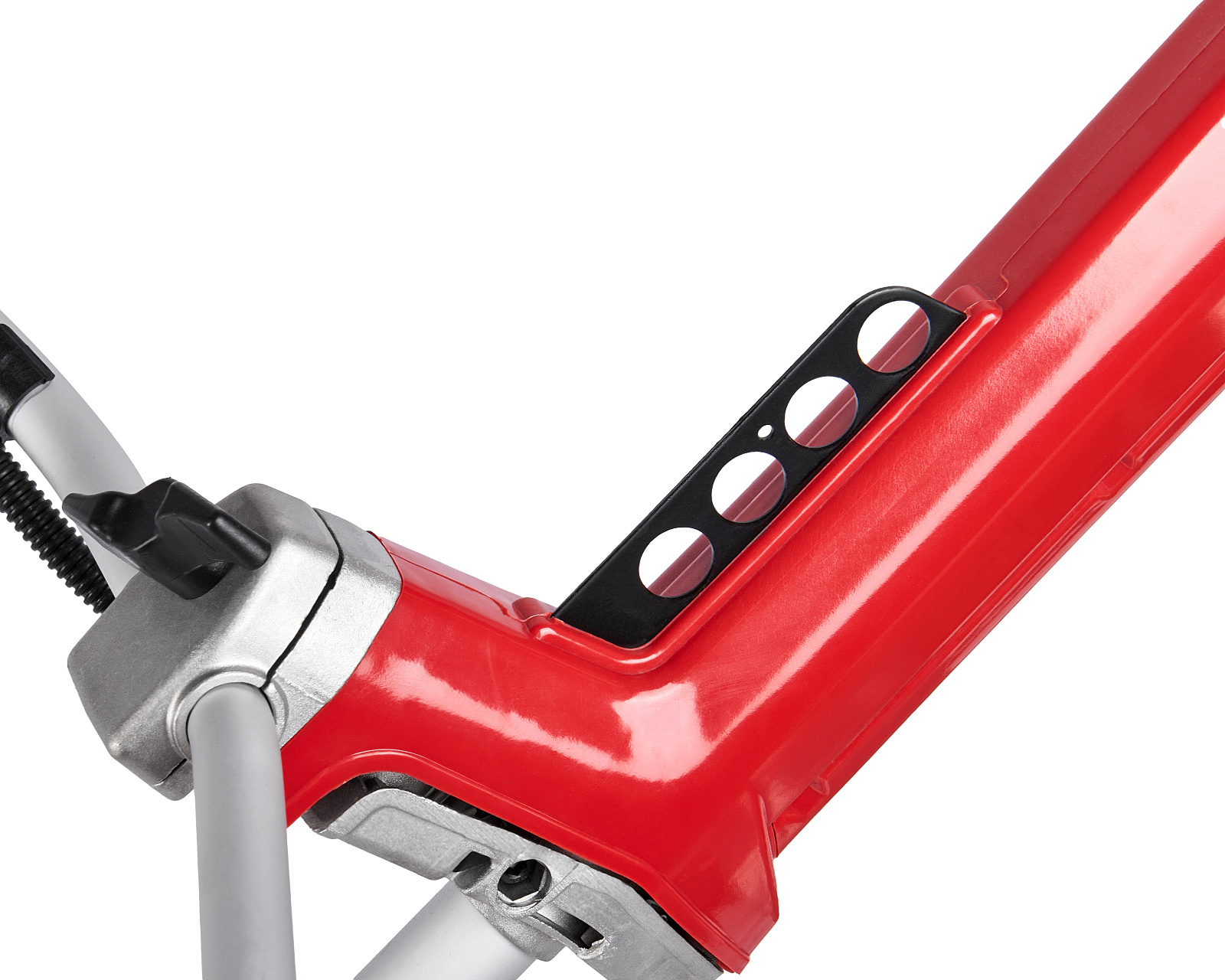 Бензиновый триммер для кошения травы леской (кордом 420 мм) и ножом (305 мм) с двухтактным двигателем мощностью 2 л.с. (1,5 кВт) выполнен с неразборной штангой.