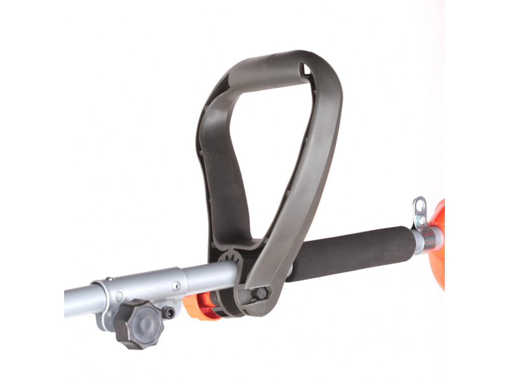 Ручка с элементами управленияи выполнена с учетом всех законов эргономики; Полуавтоматическая подача лески; Верхнее расположение двигателя дает возможность косить влажную траву; Низкий уровень шума и вибрации.