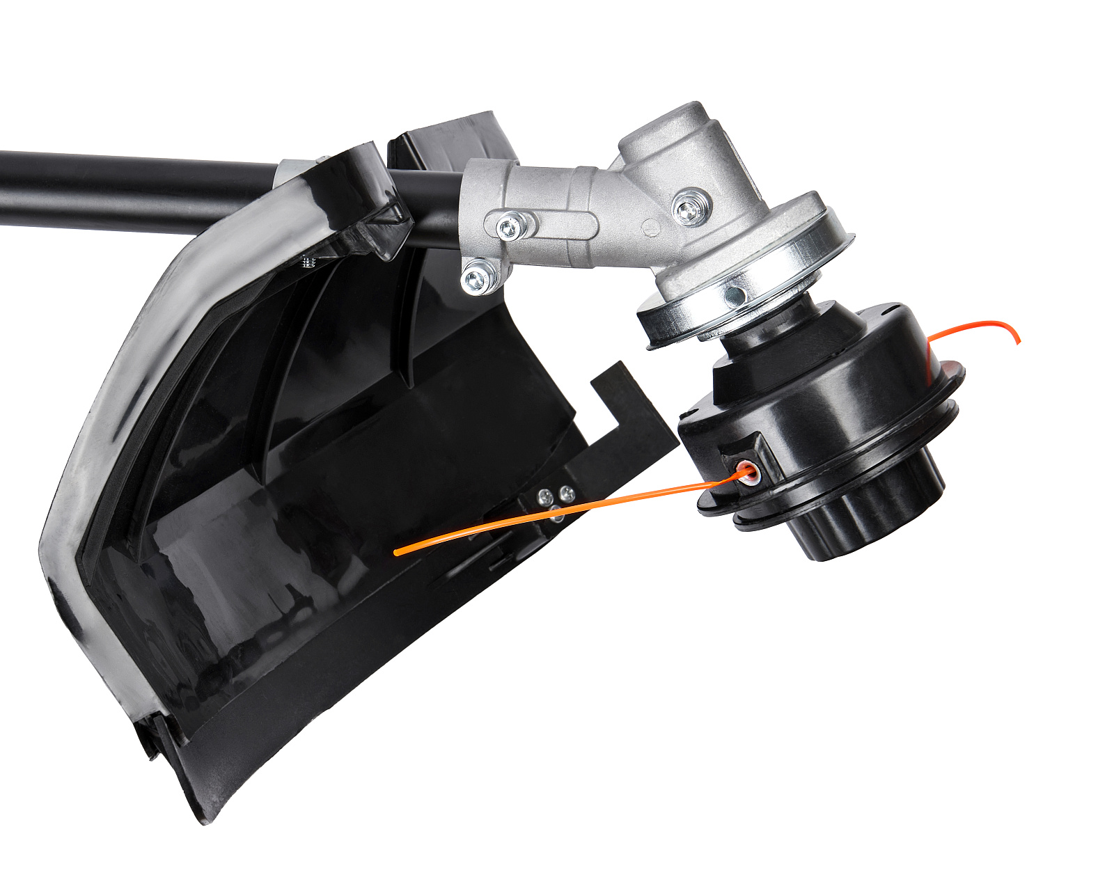 Электрический триммер с прямой разборной штангой и петлевой ручкой мощностью 1200 Вт, с шириной захвата кордом (леской) 400 мм, ножом 230 мм и диском 255 мм, предназначен для кошения вновь вырастающей и не переросшей травы на подготовленных участках с травяным покрытием, приусадебных и придомовых территориях.