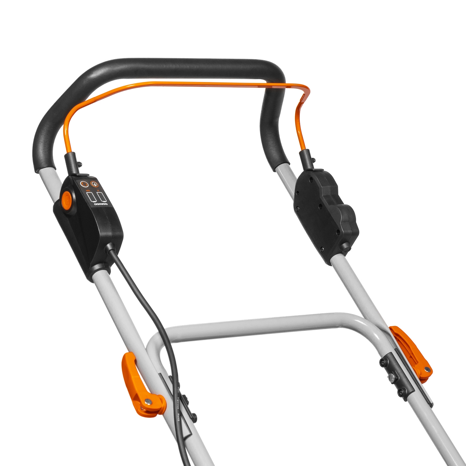 7 ступенчатая центральная регулировка высоты кошения от 30 до 75 мм позволяет выбрать оптимальную высоту травы, в зависимости от назначения газона. Настройка режущей деки производится в одно движение — путем смещения удобно расположенного рычага, который одновременно изменяет высоту подъема передних и задних колес.