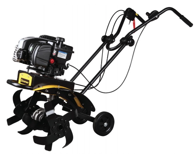 Мотокультиватор Champion ВC 5602 предназначен для обработки небольших земельных участков. Съемные рукоятки упрощают хранение инструмента. Система воздушного охлаждения предотвращает перегрев внутренних органов инструмента. Защитные крылья предотвращают выброс земли на оператора.