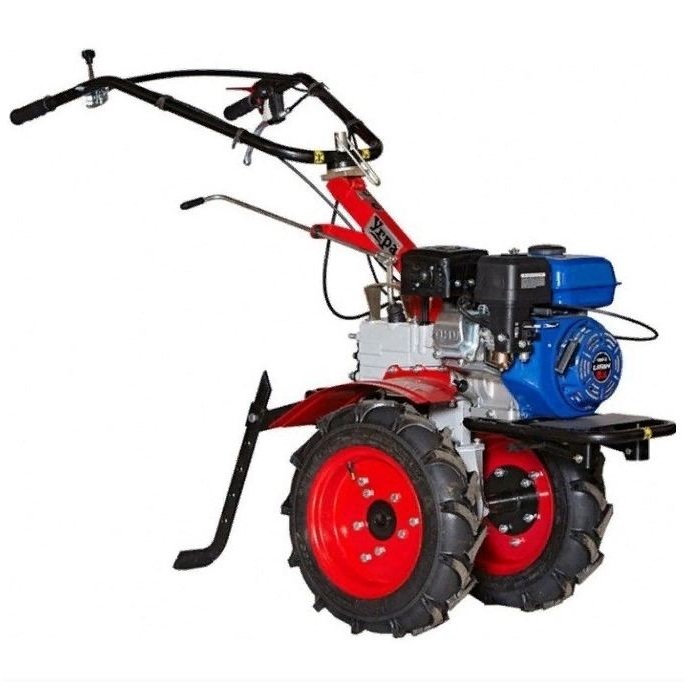 Данная модификация принадлежит к среднему классу тяжелых мотоблоков, предназначенных для обработки малых и средних посевных площадей (до 50 соток). Мотоблок “Угра” оснащен мощным двигателем Lifan 170F производительностью 7 лошадиных сил. Мотор бензиновый, карбюраторный, на четыре такта. Запуск силовой установки осуществляется вручную с задействованием инерционного стартера. Охлаждение мотора принудительное воздушное. Легкий запуск двигателя обеспечивает бестранзисторная система зажигания ТС1. Мотоблок оснащен системой защиты запуска двигателя с критическим уровнем масла. Уровень шума понижен. Машина экономно расходует топливо, может работать на бензине низкого качества. Мотоблок имеет компактные размеры, благодаря чему может легко транспортироваться в багажнике автомобиля. Благодаря встроенным двум валам отбора мощности к мотоблоку “Угра” можно присоединять различное навесное оборудование активного и пассивного типа.