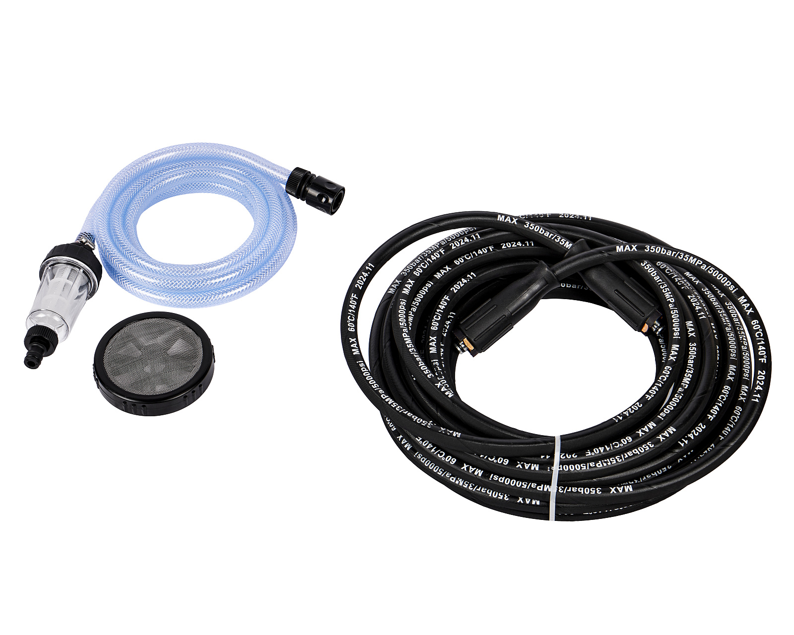 Мойка высокого давления мощностью 7,5 кВт с питанием от электросети 380 В и максимальным давлением на выходе в 300 бар, предназначена для мойки автомобилей и любой другой техники, террас, тротуарной и фасадной плитки, фасадов зданий, а также для прочистки дождевых сливов. Мойка должна работать только с чистой водой без механических примесей. Для бесконтактной мойки с применением пеногенератора используется специальное средство, предназначенное для этих целей.