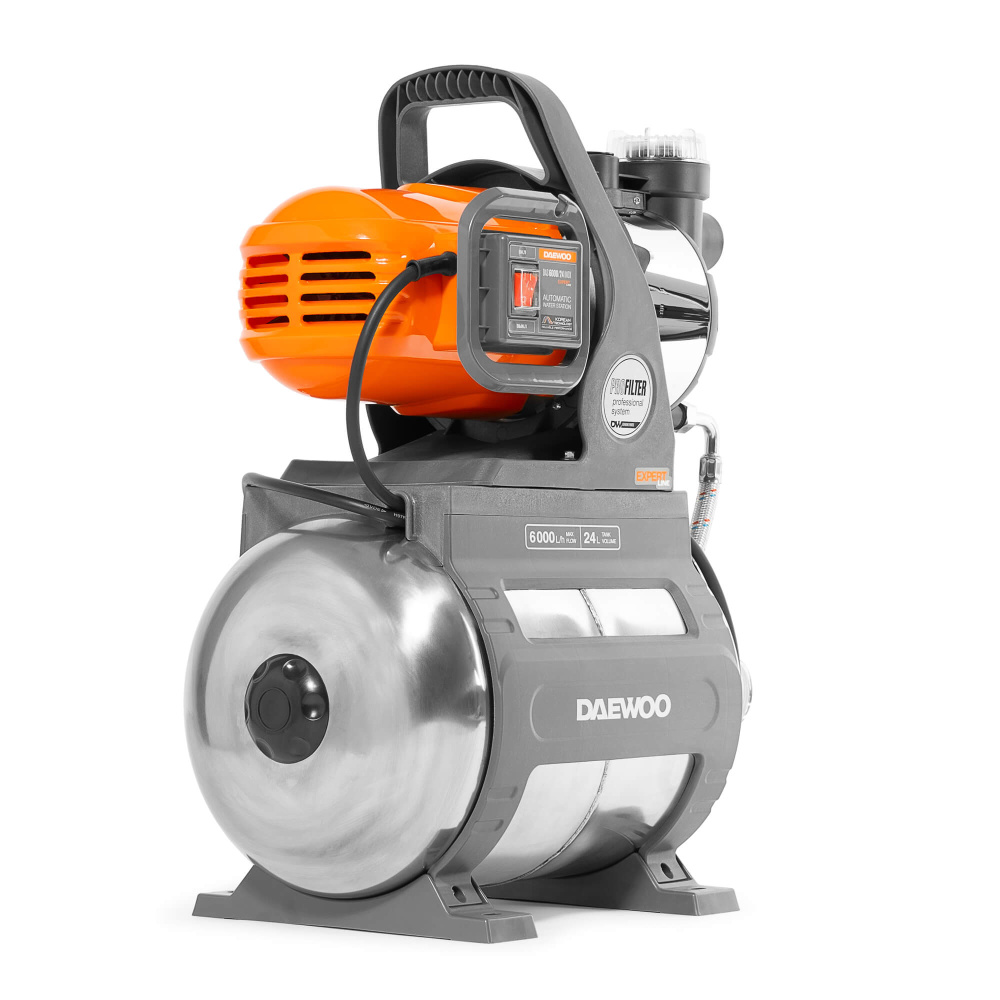 Насосная станция DAEWOO DAS 6000/24 INOX (24л, бак из нерж. стали, 1400Вт, 6000л/час, 19,2кг, выс.подачи50м, глуб.всас.8м, макс.давл. 5 Бар, встр. фильтр)