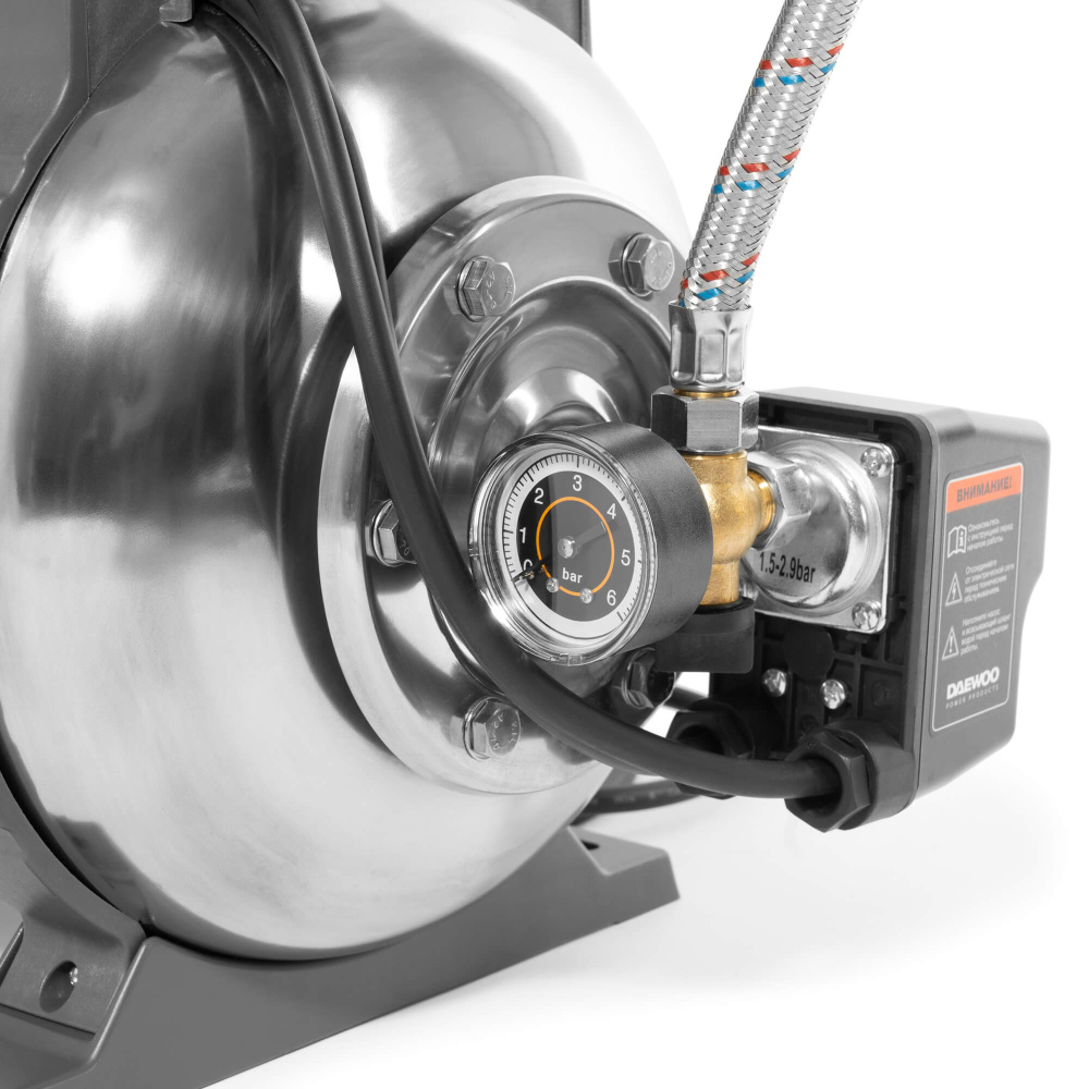 Насосная станция DAEWOO DAS 6000/24 INOX (24л, бак из нерж. стали, 1400Вт, 6000л/час, 19,2кг, выс.подачи50м, глуб.всас.8м, макс.давл. 5 Бар, встр...