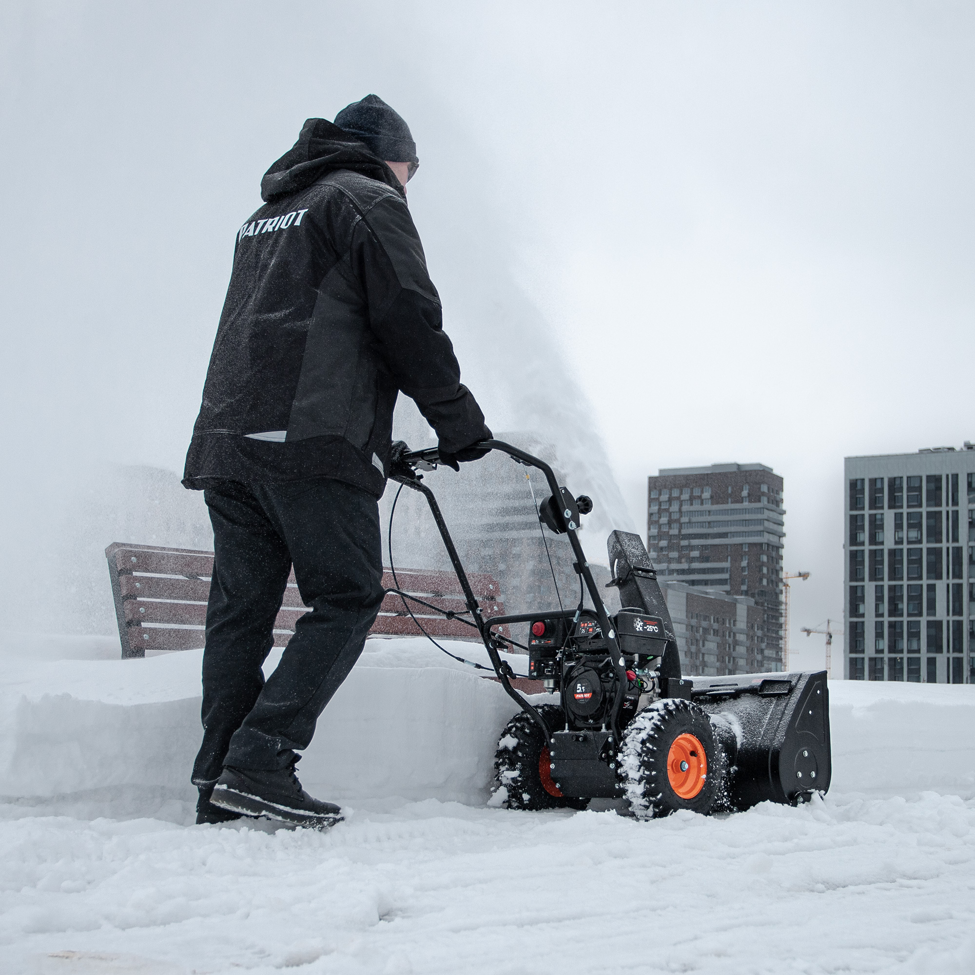 Снегоуборщик бензиновый PATRIOT PRO 777 S для работы на городской территории и загородных участках. Двухступенчатая система со стальным шнеком и регул...