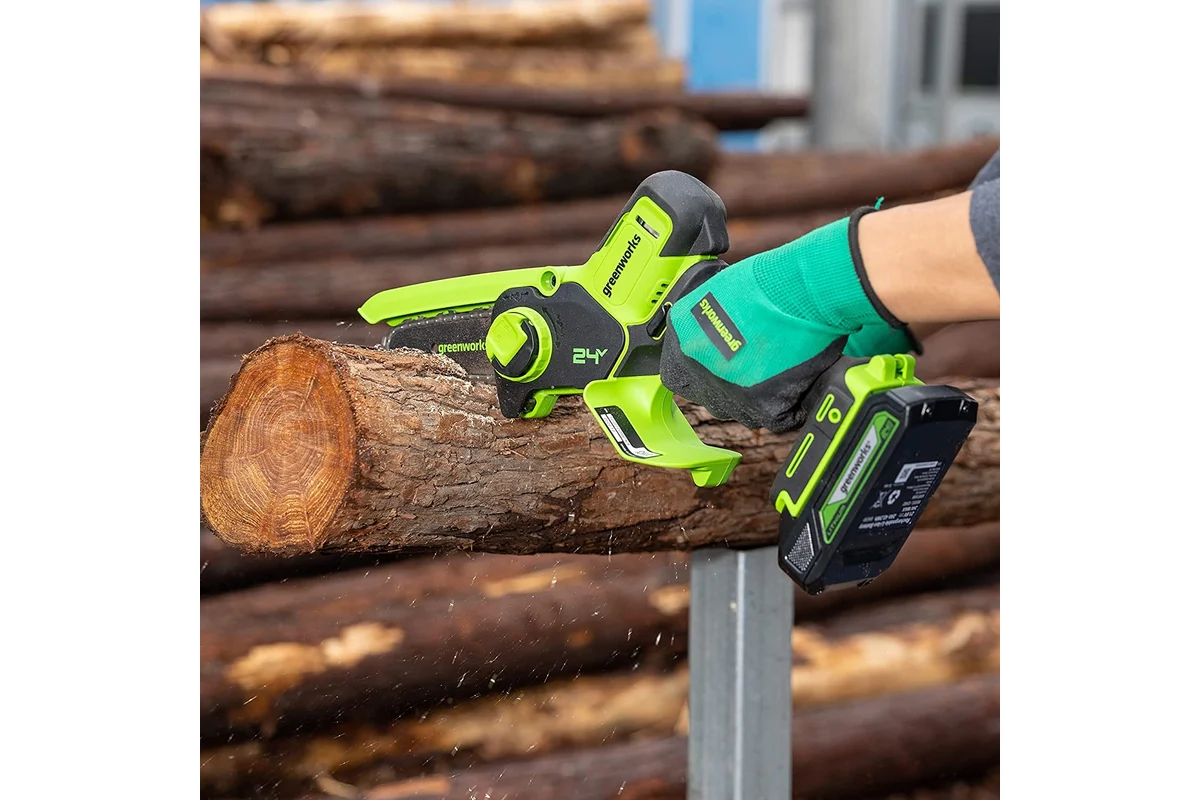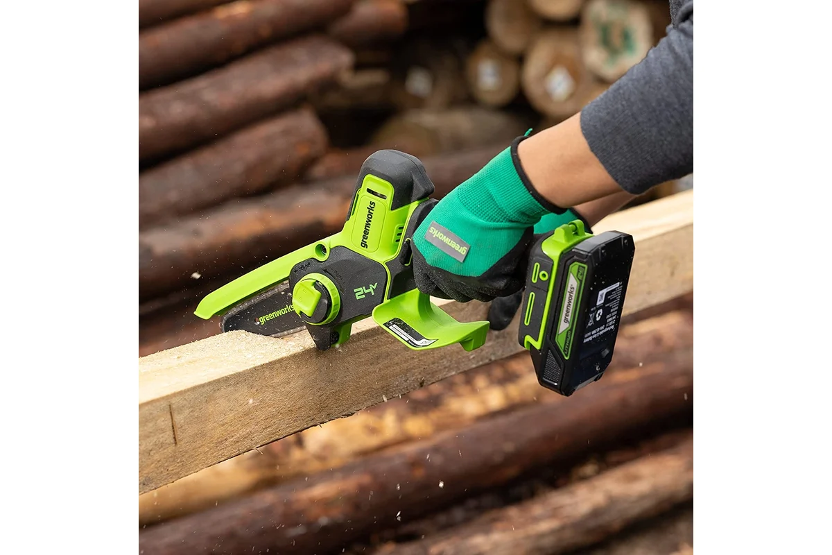 - Цепная мини пила акк. Greenworks G24MCS10