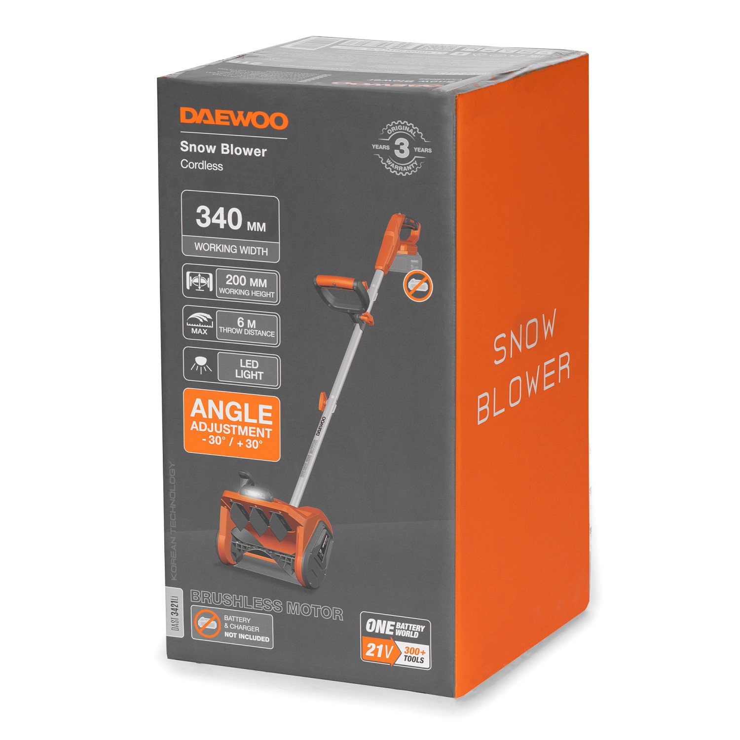 Снегоуборщик-лопата DAEWOO DAST 3421Li (21В,Бесщет.34см/20см,направл., ФАРА, БЕЗ АКБ и ЗУ)