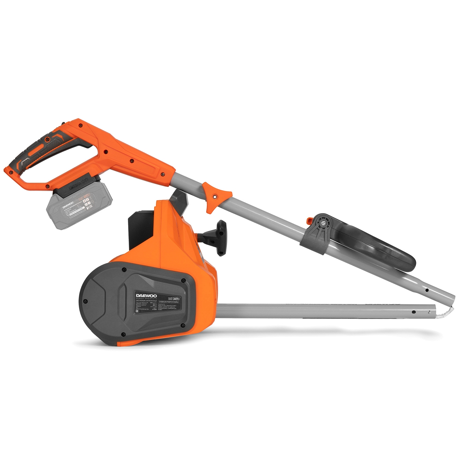 Аккумуляторный снегоуборщик DAEWOO предназначен для ухода за небольшим участком. Предусмотрена разборная штанга, благодаря чему агрегат удобно хранить и перевозить.
