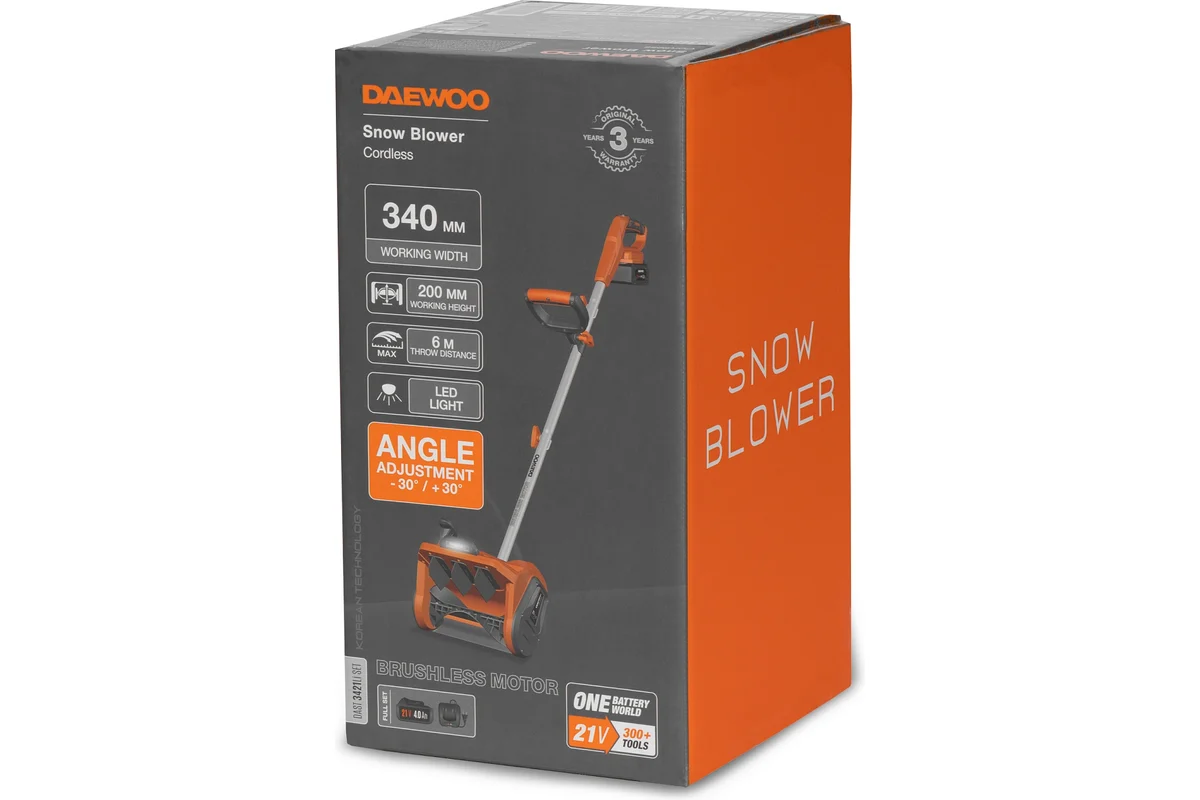 Снегоуборщик-лопата DAEWOO DAST 3421Li SET (21В,Бесщет,34см/20см,ФАРА, 1АКБ*4,0Ач Li-Ion, ЗУ)
