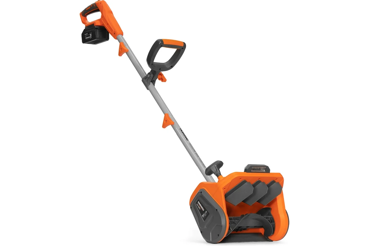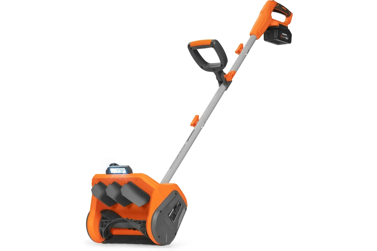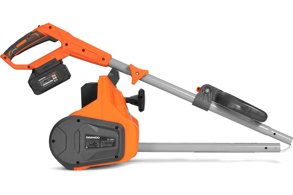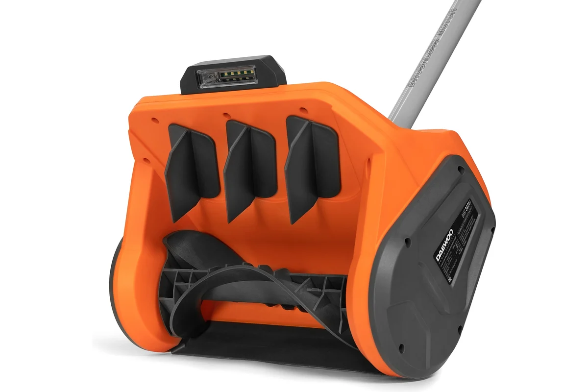 Аккумуляторный снегоуборщик DAEWOO предназначен для ухода за небольшим участком. Предусмотрена разборная штанга, благодаря чему агрегат удобно хранить и перевозить.