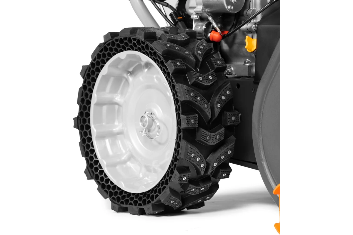 Эффективность. Металлический шнек быстро загребает плотный слежавшийся снег и подает на крыльчатку, которая выбрасывает его через желоб.
