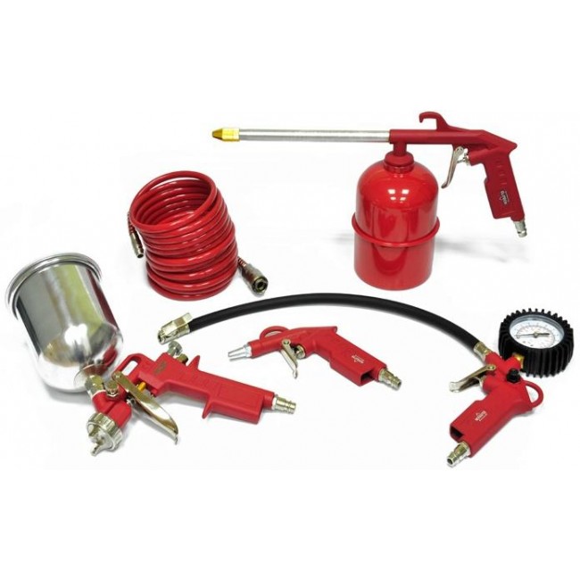 Набор пневмоинструмента Elitech 0704.012000 позволяет выполнять широкий спектр работ. Пригодится в любом гараже, автосервисе, мастерской. Надежен и практичен в использовании, так как: инструменты устойчивы к перегрузкам и перегреву; корпусы выполнены из долговечных и прочных материалов; краскопульт имеет возможность регулировки факела и расхода жидкости; пистолет для накачки шин оснащен манометром - для визуального контроля за текущим давлением