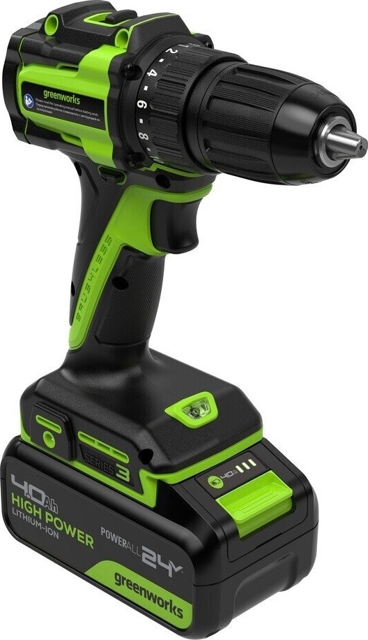 Дрель-шуруповерт аккумуляторная GREENWORKS DD345 24V, АКБ 4Ач и ЗУ 3708307CUB